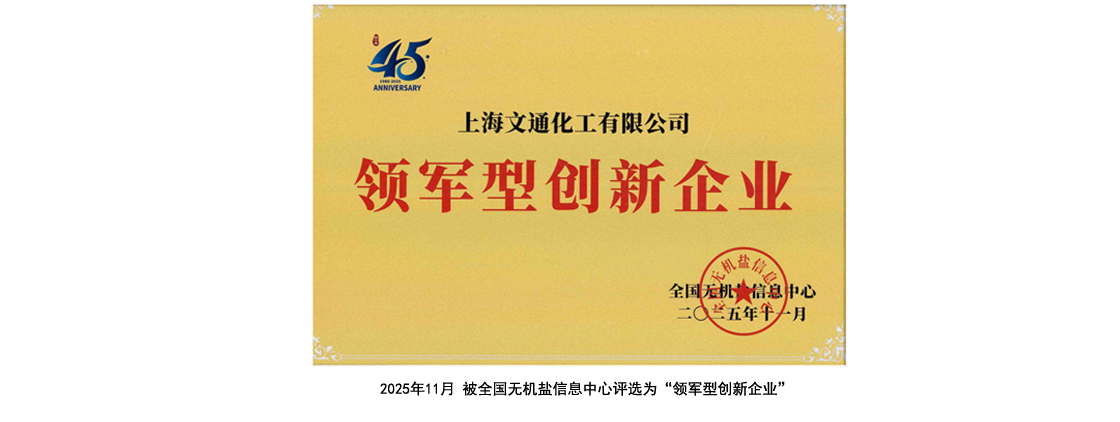2025年11月 上海文通化工有限公司被全國(guó)無機(jī)鹽信息中心評(píng)選為“領(lǐng)軍型創(chuàng)新企業(yè)”